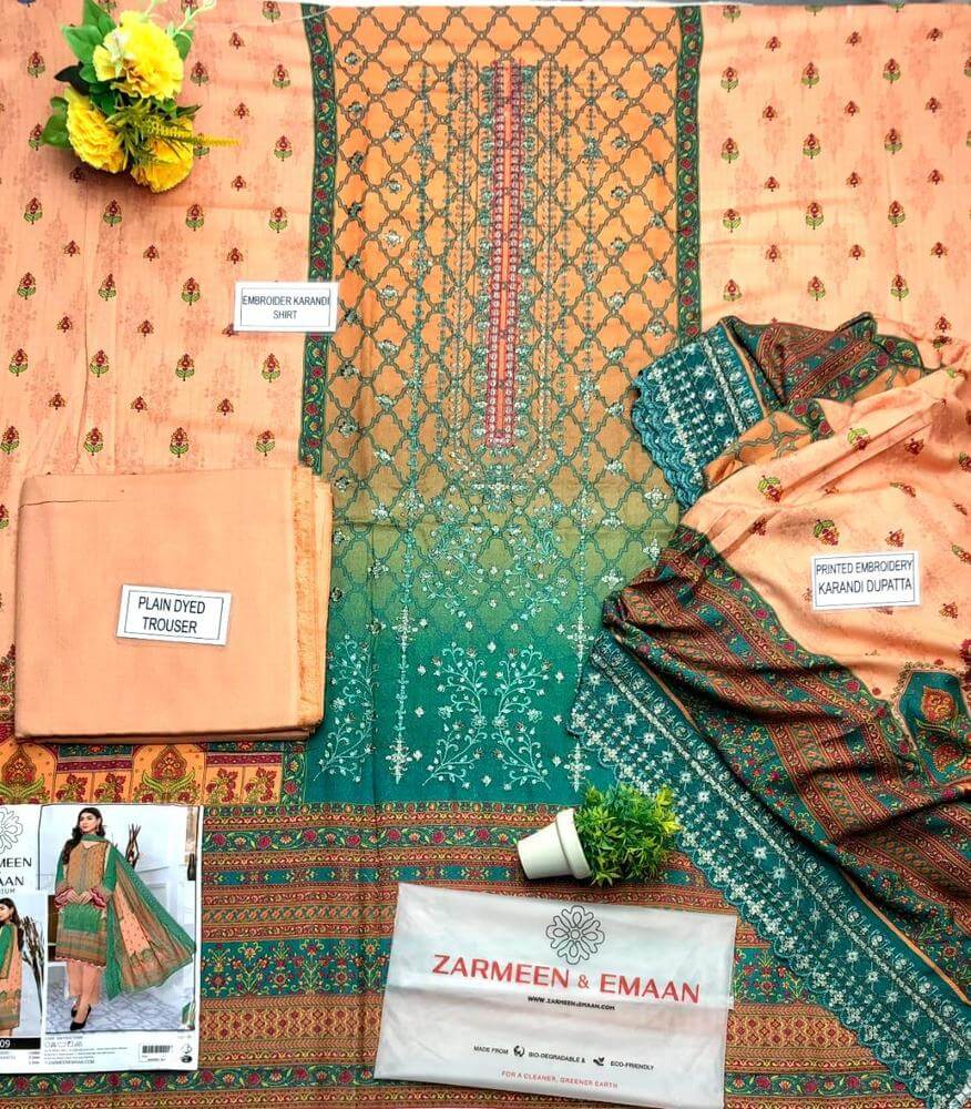 • Dupatta: Embroidered Karandi